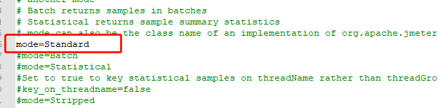 原因:jmeter客户端默认是统计模式,不显示响应数据,减小开销。想查看响应数据,打开打开jmeter.properties文件,去掉mode=Standard前的#