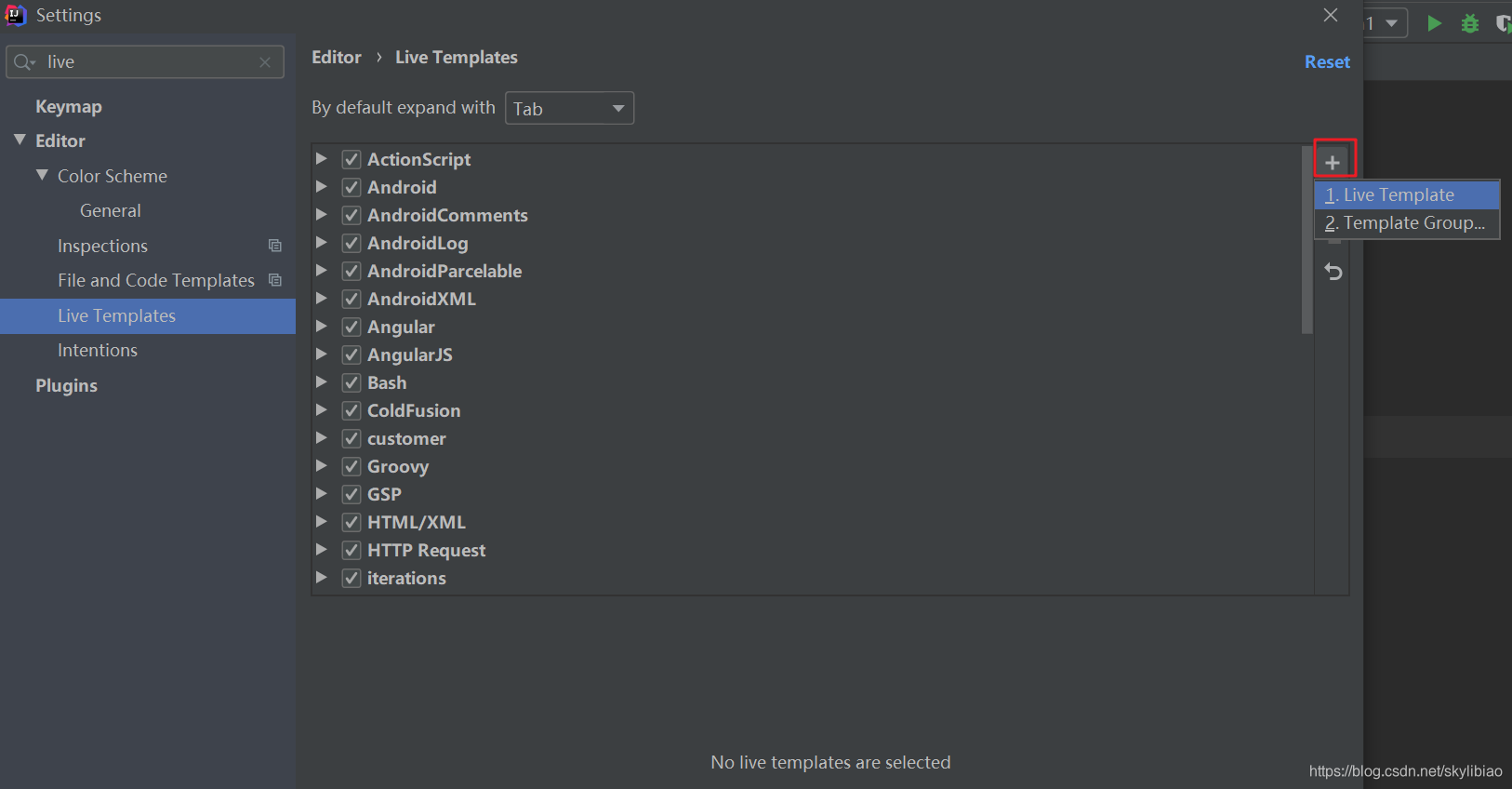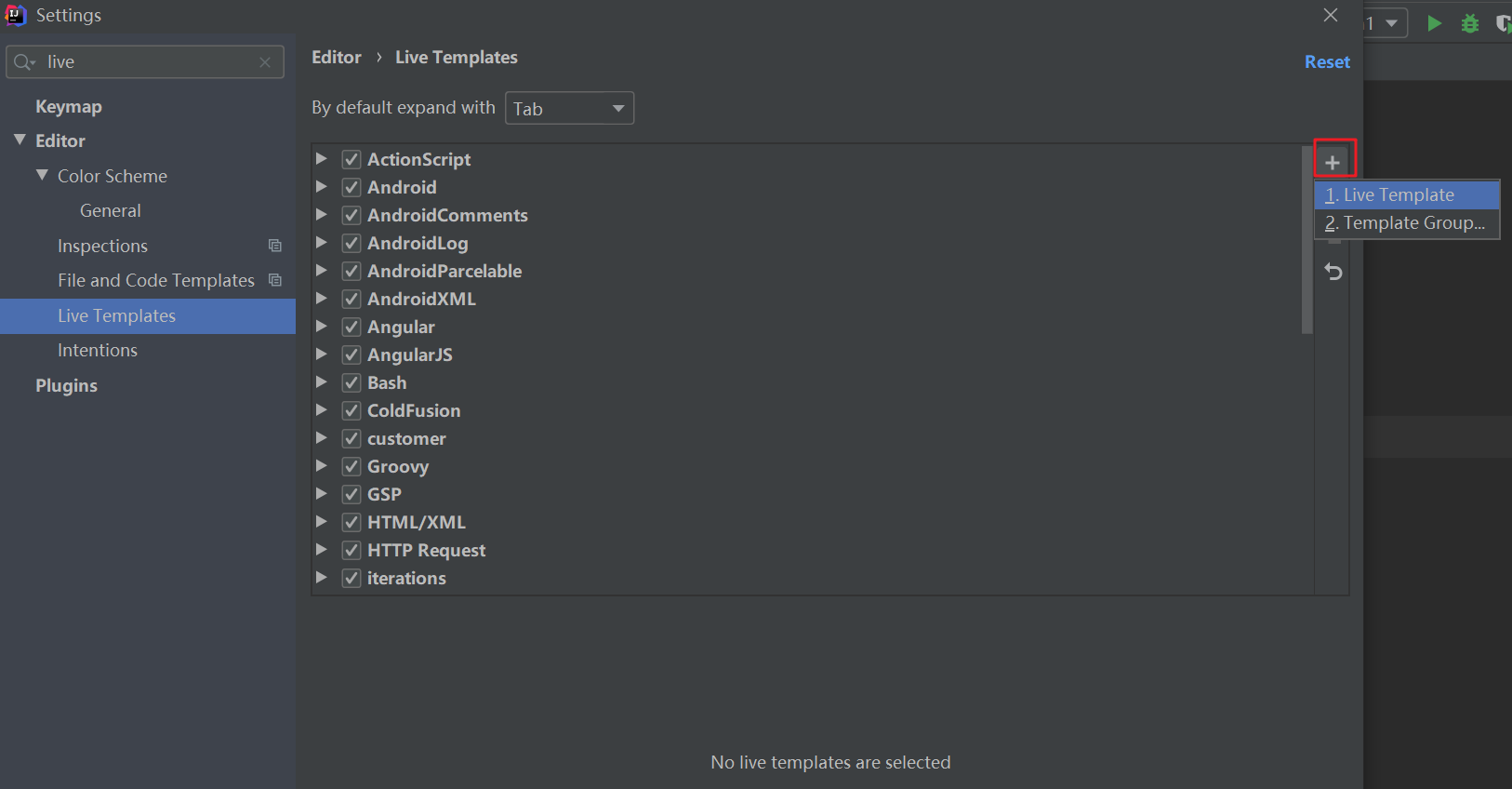 2.找Live Templates ,可以在搜索里面搜live,找到后点击。