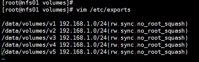 /data/volumes/v5 192.168.1.0/24(rw,sync,no_root_squash)