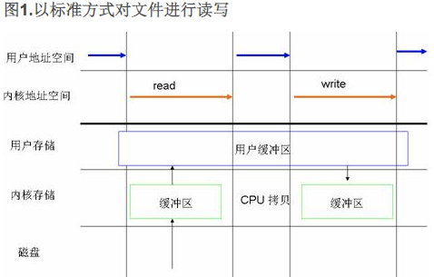 在 Linux 中,这种访问文件的方式是通过两个系统调用实现的:read() 和 write()。当应用程序调用 read() 系统调用读取一块数据的时候,如果该块数据已经在内存中了,那么就直接从内存中读出该数据并返回给应用程序;如果该块数据不在内存中,那么数据会被从磁盘上读到页高缓存中去,然后再从页缓存中拷贝到用户地址空间中去。如果一个进程读取某个文件,那么其他进程就都不可以读取或者更改该文件;对于写数据操作来说,当一个进程调用了 write() 系统调用往某个文件中写数据的时候,数据会先从用户地址空间拷贝到操作系统内核地址空间的页缓存中去,然后才被写到磁盘上。但是对于这种标准的访问文件的方式来说,在数据被写到页缓存中的时候,write() 系统调用就算执行完成,并不会等数据完全写入到磁盘上。Linux 在这里采用的是我们前边提到的延迟写机制( deferred writes )。