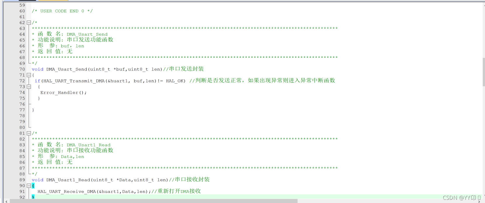 HAL_UART_Receive_DMA(&huart1,Data,len);//重新打开DMA接收