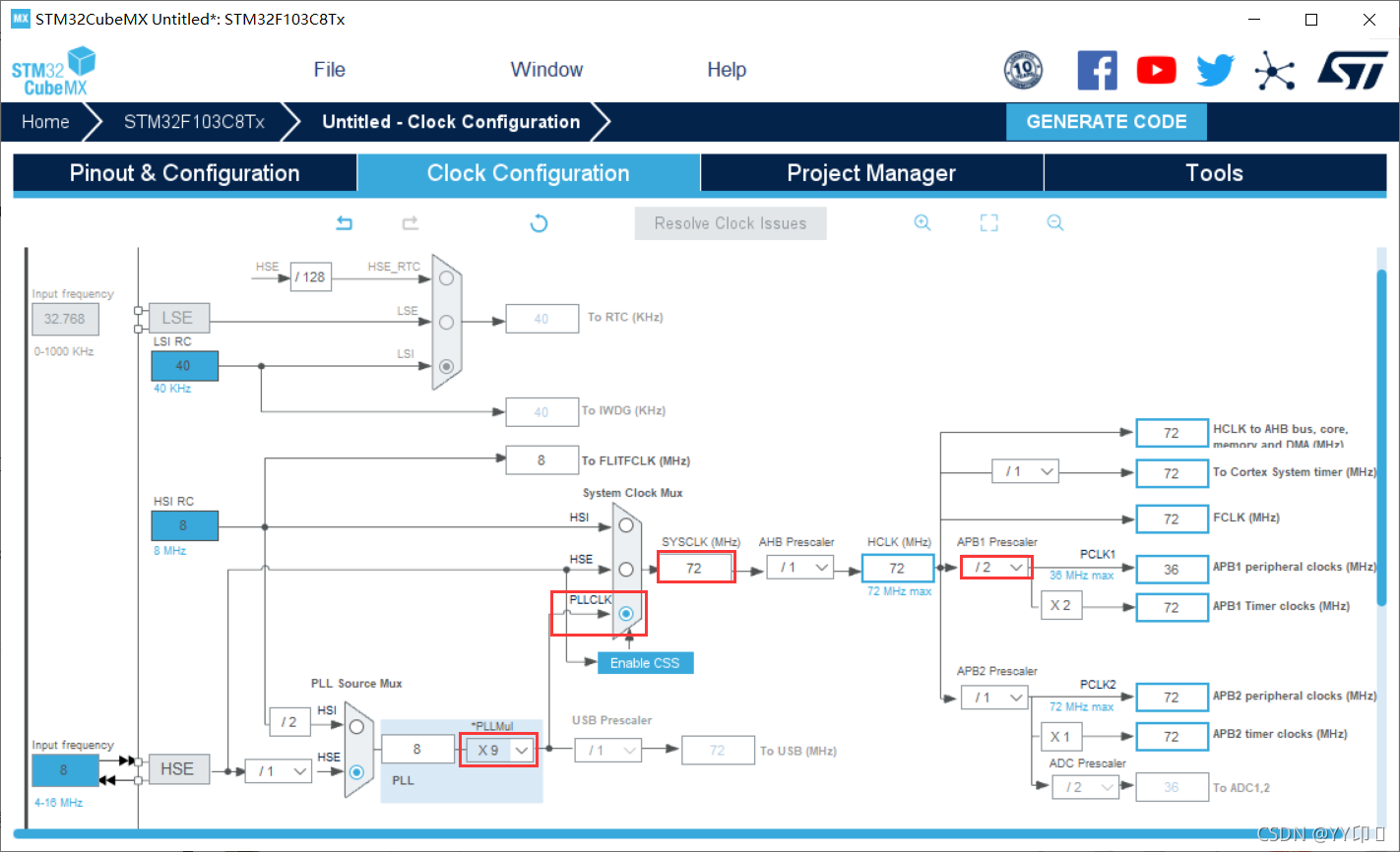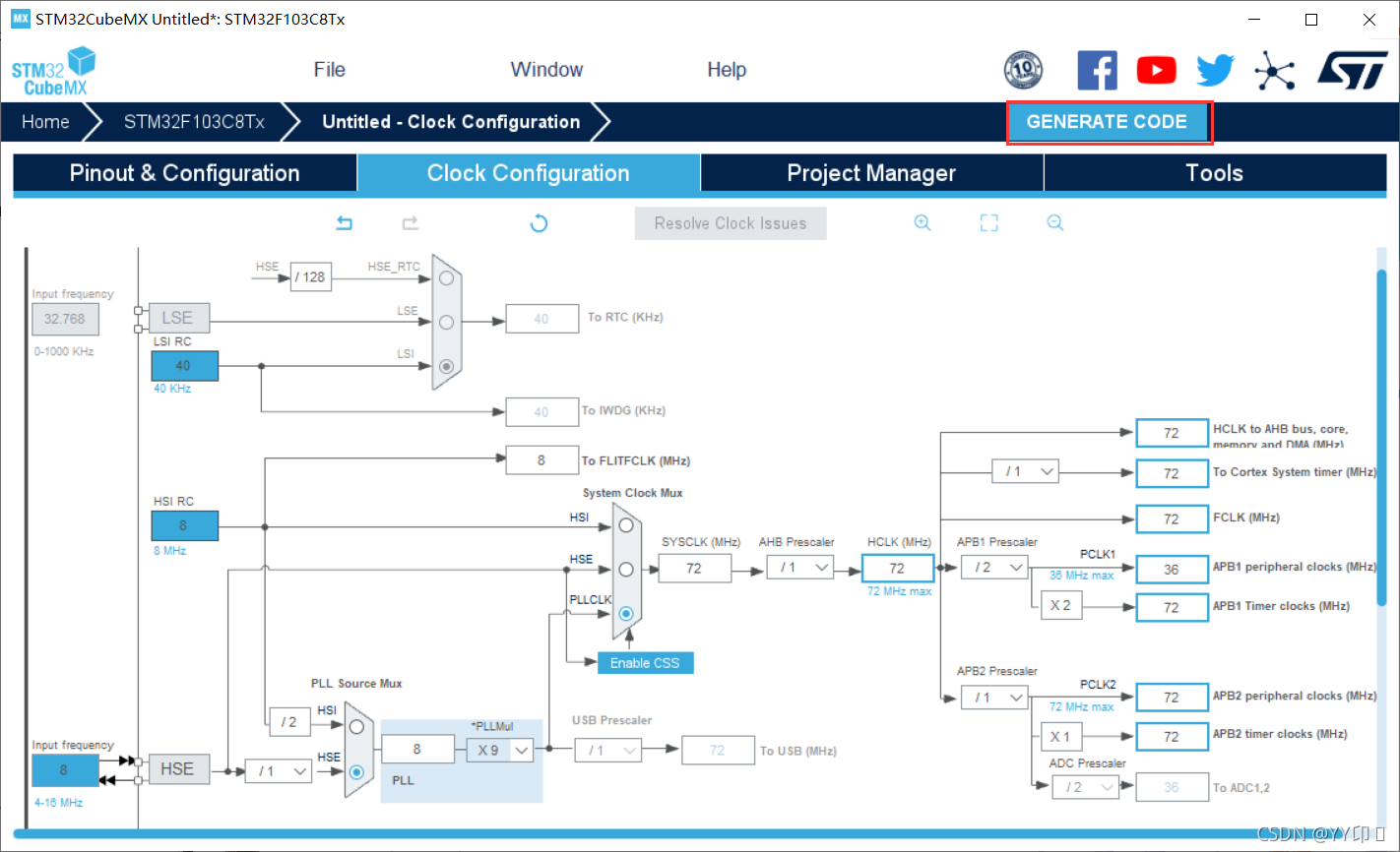 1.5配置时钟,设时钟频率为72MHZ