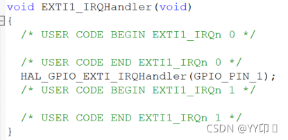 可以看到生成的中断服务函数 void EXTI1_IRQHandler(void)