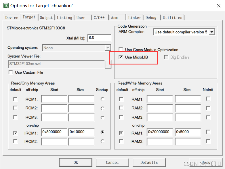 在target勾选Use MicroLIB,需要调用微型库