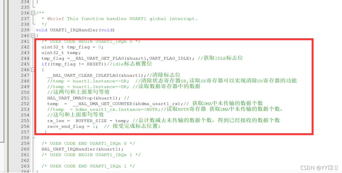 tmp_flag =__HAL_UART_GET_FLAG(&huart1,UART_FLAG_IDLE); //获取IDLE标志位