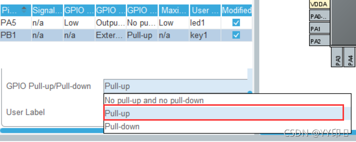 1.2 设置led,PA5引脚和外部中断EXTI1,PB1