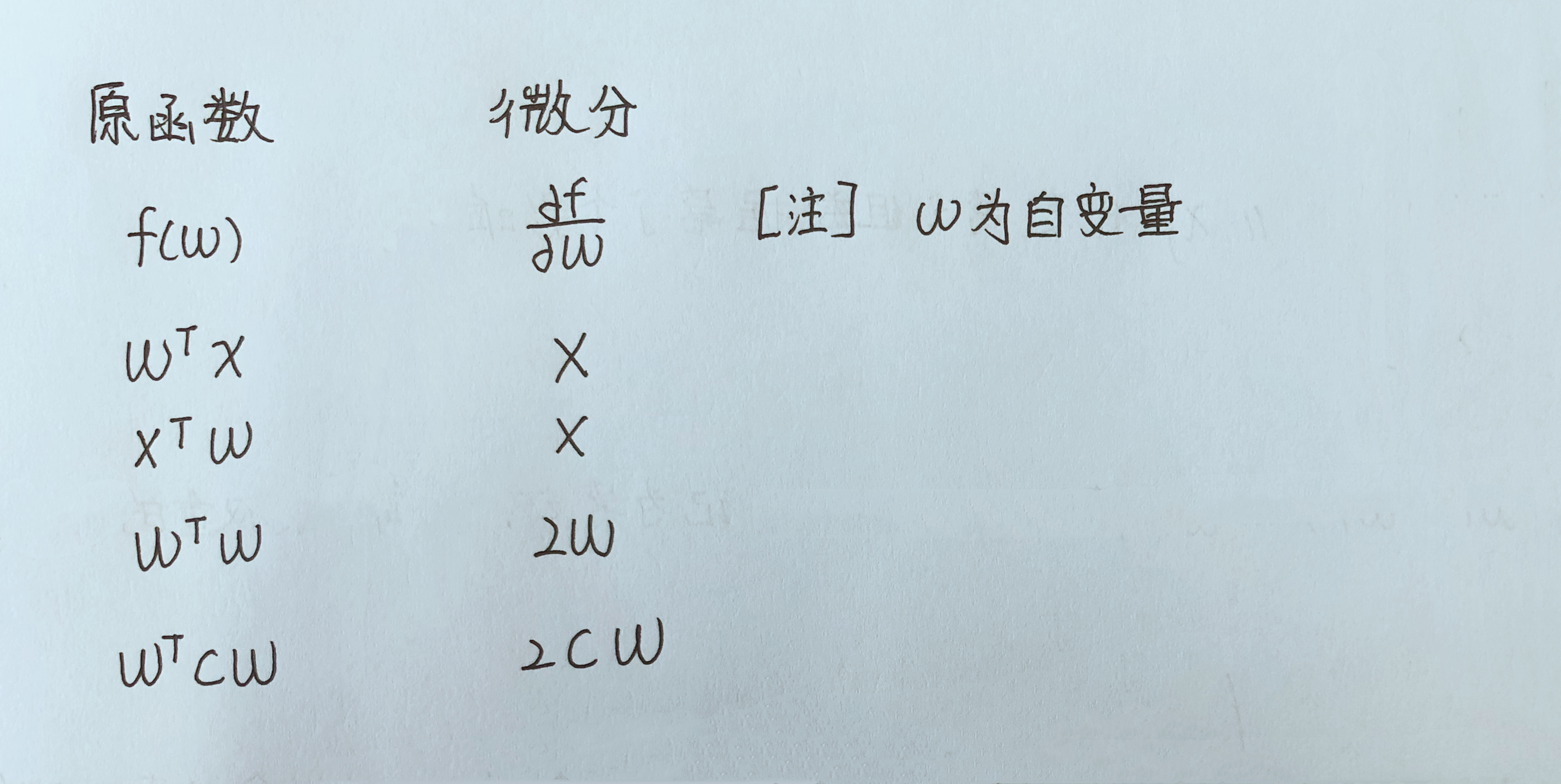 由于我们把一组w当做一个列向量来看待,现在给出针对列向量的微分公式: