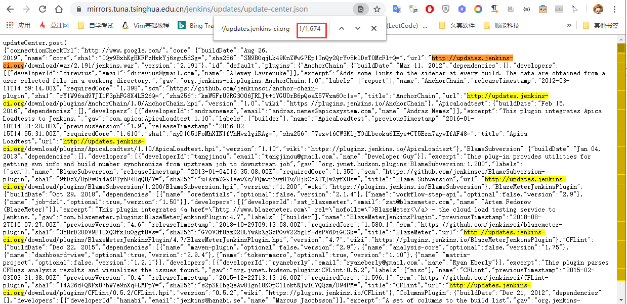 替换原来的官方的json,我们来看看清华源拉下来的是什么 这里使用官方的下载插件的url全局搜索
