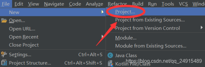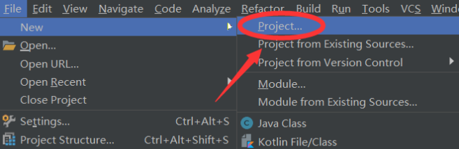 1.打开IDEA,右上角选择File->New->Project,或者在引导页面选择Creat New Project。