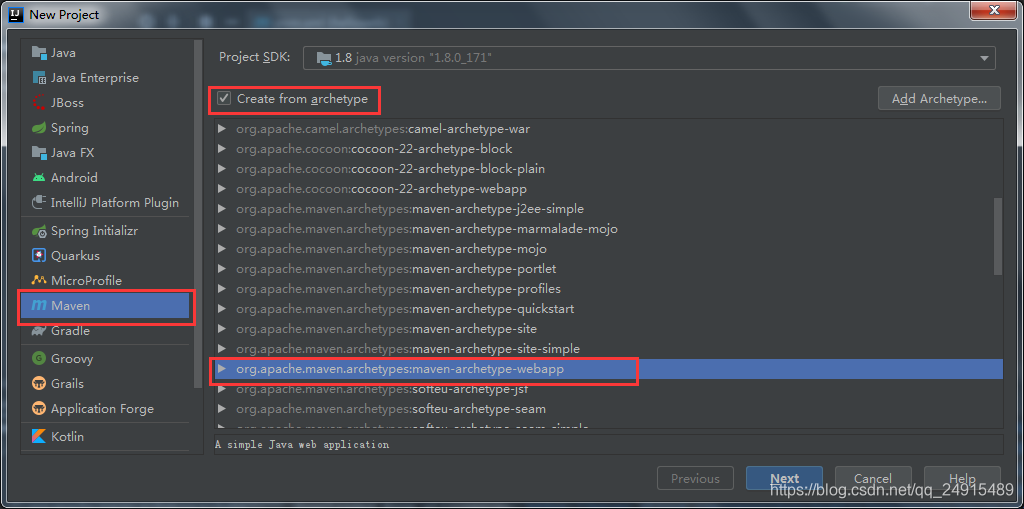 一般情况使用模板创建maven项目使用的是quickstart(普通java项目)和web,下文创建web项目。