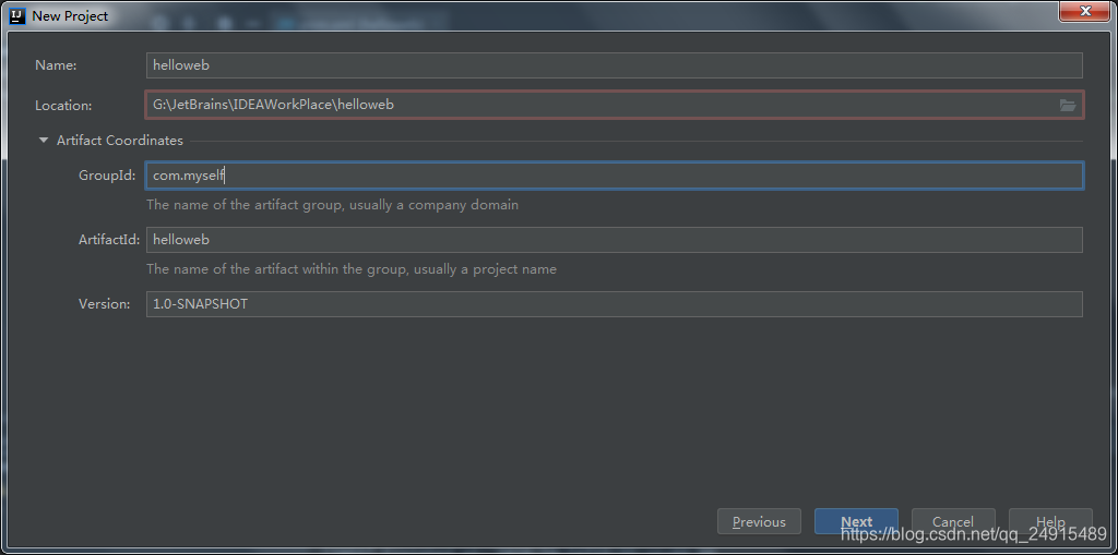 1.与上文一样,不同的是选择的模板不同,如下图,选择maven-archetype-webapp即可