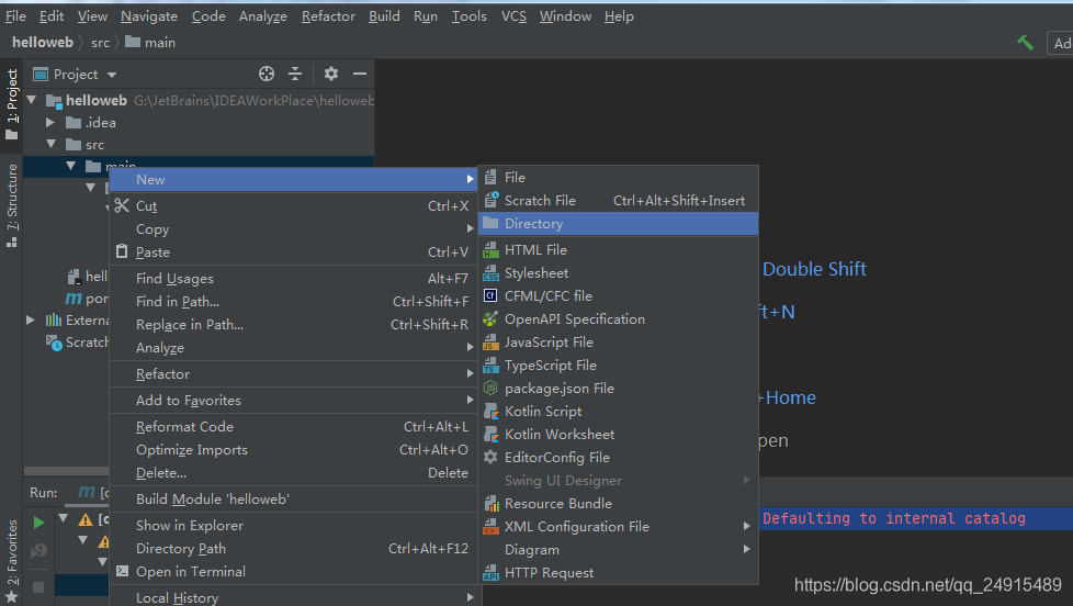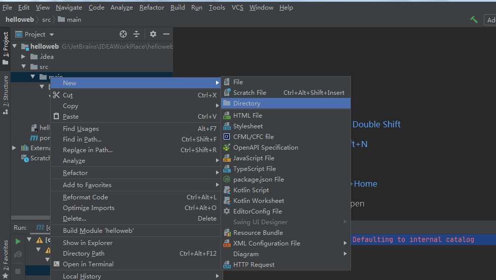 1.创建src/main/resources目录,在main上右键,new--->Directory,命名resources