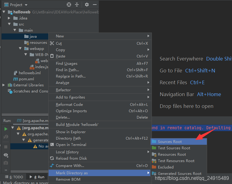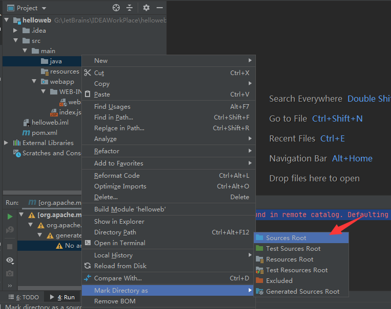 3.创建src/main/java目录,将该目录标记为sources root