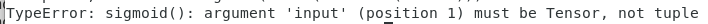 TypeError: sigmoid(): argument 'input' (position 1) must be Tensor, not tuple