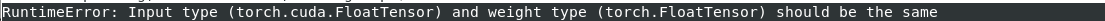 RuntimeError: Input type (torch.cuda.FloatTensor) and weight type (torch.FloatTensor) should be the same