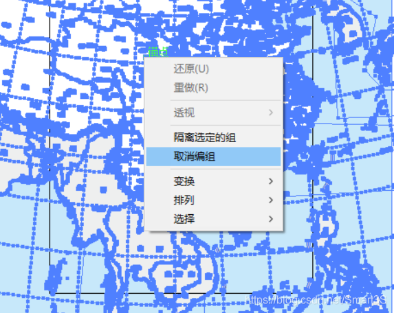3、选中数据,右键→取消编组: