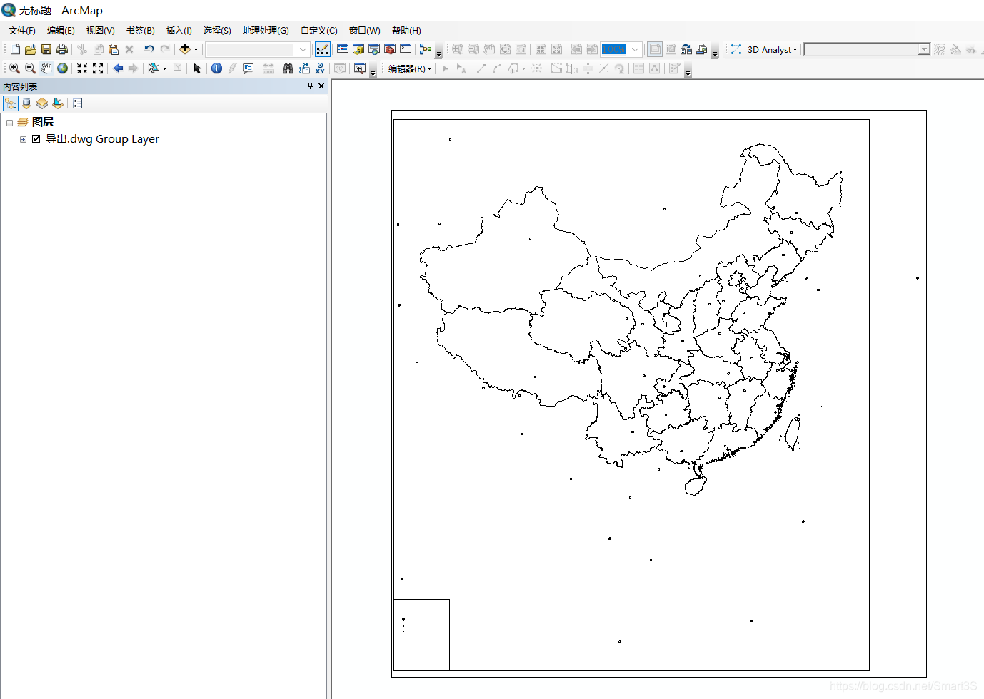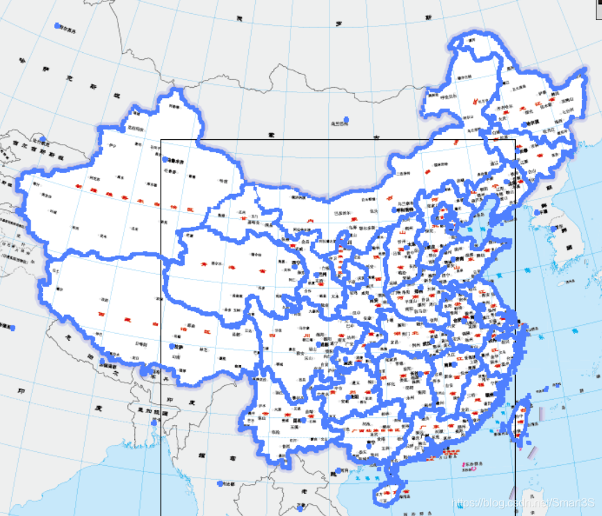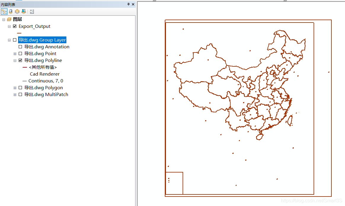 4、现需要提取数据中我国的矢量边界。通过对地图的观察可以发现,数据我国的领土斑块皆为白色或具有相同的描边: