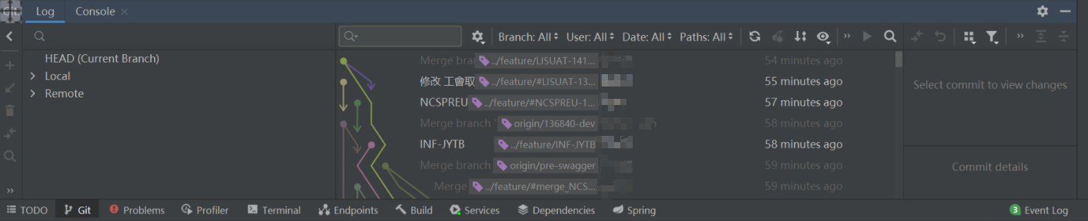 在idea中,如果想要查看在git版本控制系统下修改的本地文件,发现在idea下方的窗格并没有,只有log和console两个模块。此时需要通过一下操作来查看本地修改文件。