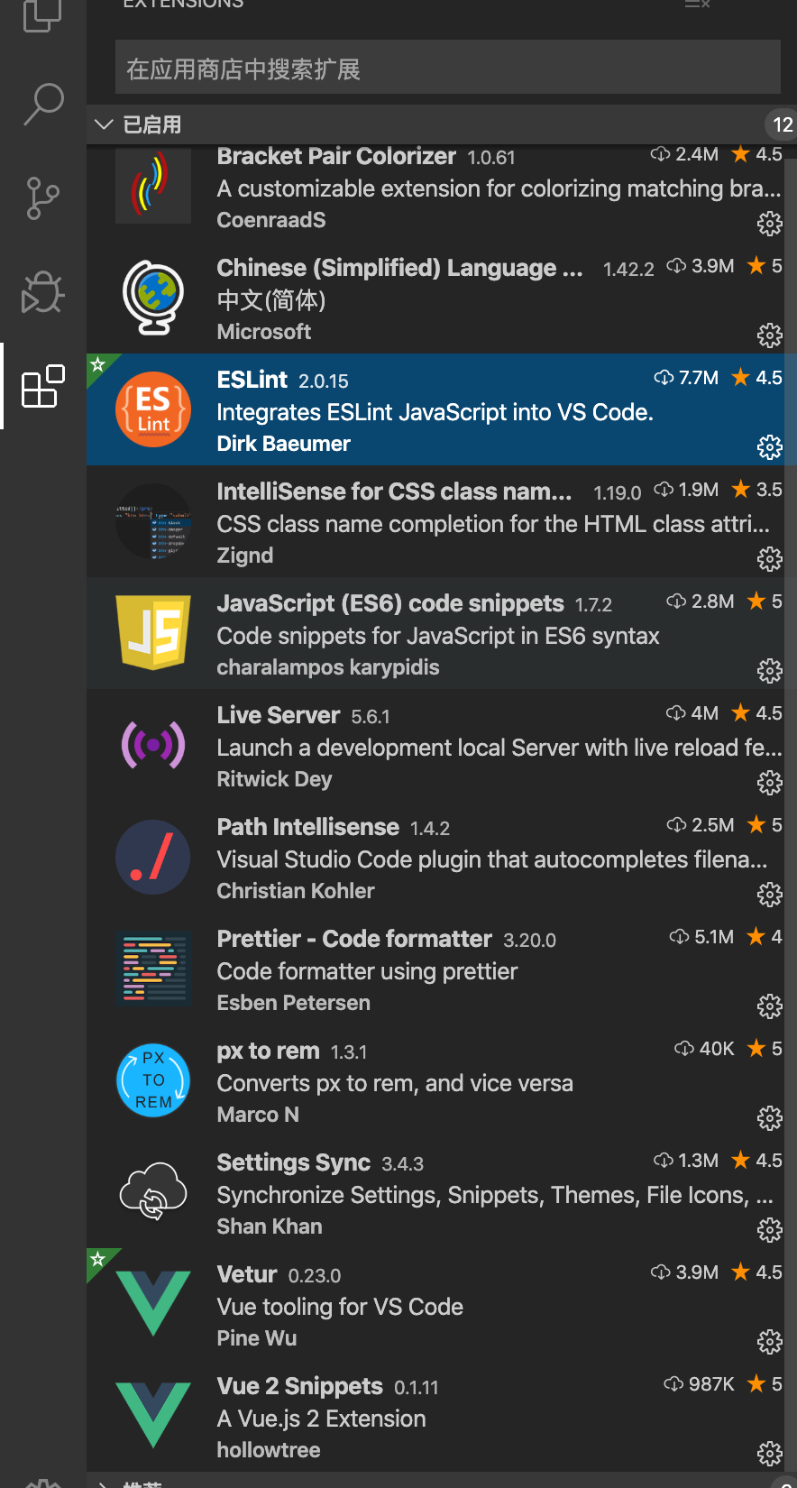 注意:eslint, prettier-Code formatter ,vetur 这三个插件必须安装,其他的插件根据自己的习惯