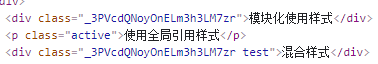 /*模块化样式,类名或id名在DOM渲染时被重写为hash值,与local()包裹效果一致,均被模块化*/
