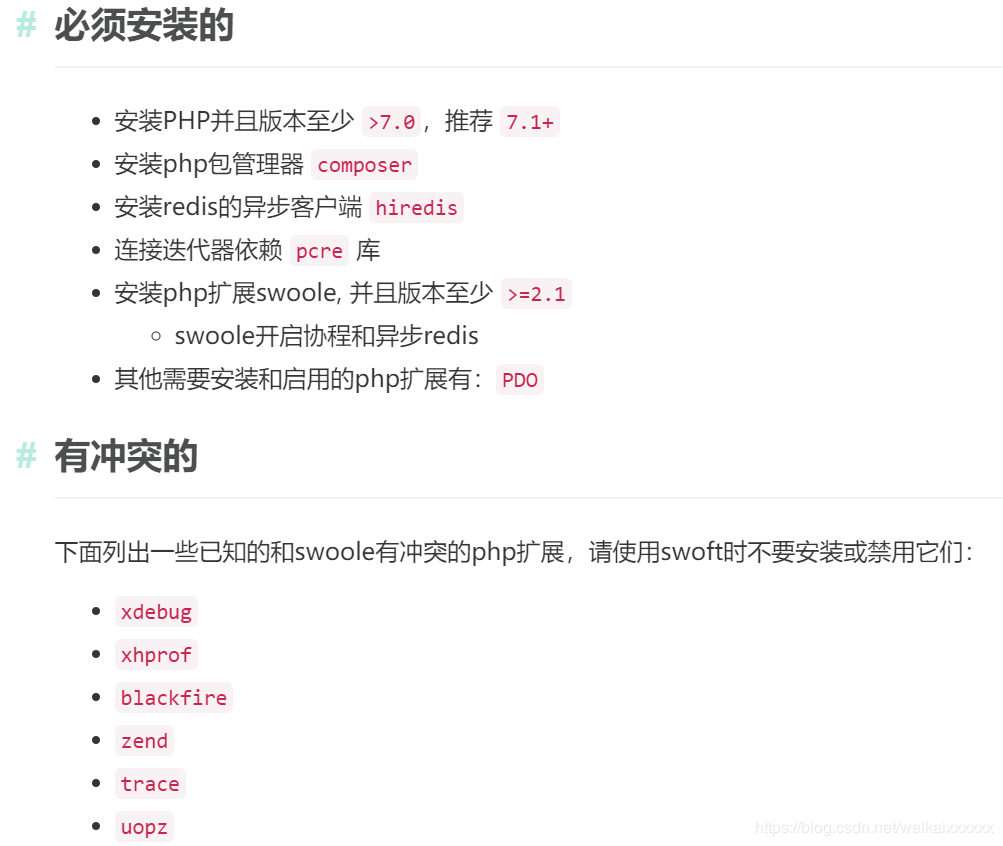 安装swoft前请确保已安装composer 和swoole扩展,swoole扩展版本推荐4.0.3。swoole4.4扩展不兼容swoft1.0框架,其他版本自测。4.0.3暂时未发现问题