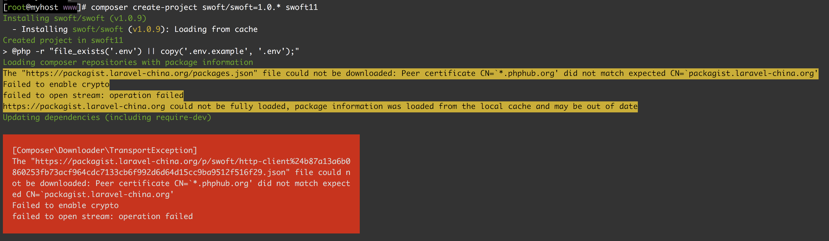 tip:提示报错莫慌。是因为composer的laravel源过期了。切换到阿里源即可
