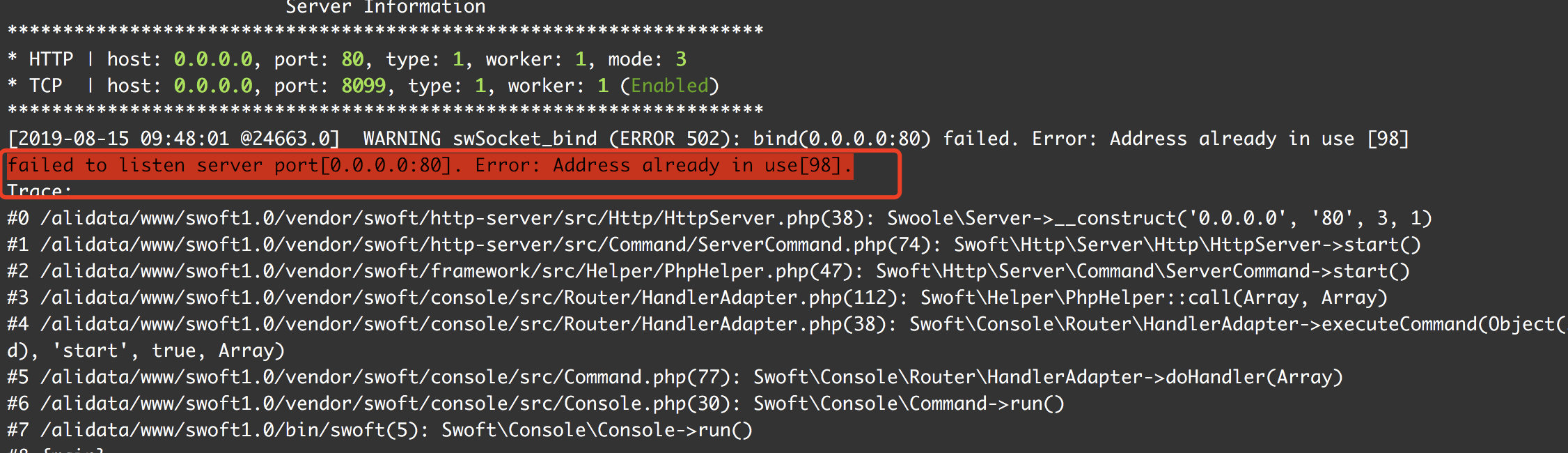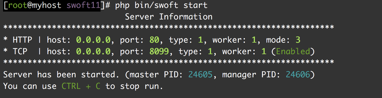 php bin/swoft start
