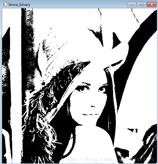cv2.imshow("lenna_binary", lenna_binary.astype("uint8"))
