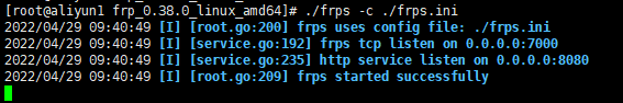 - 启动运行:./frps -c ./frps.ini