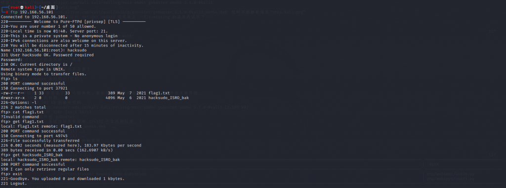 登录ftp发现flag1.txt和hacksudo_ISRO_bak目录