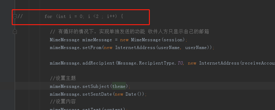 如果需要发送多个邮件的话,可以将我注释的for循环放开。