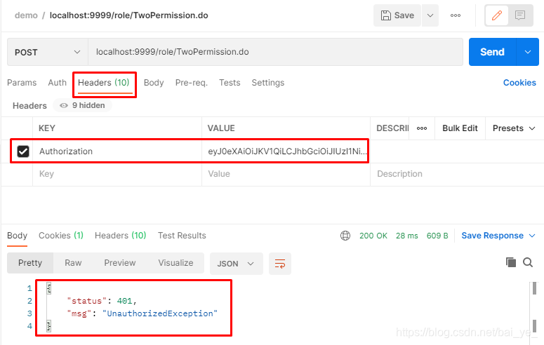 ps:由于之前测试用户表设计一个用户只对应一种角色一种权限,所以第四个测试只有失败的情况