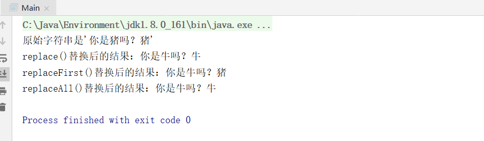 System.out.println("replace()替换后的结果:"+rp);