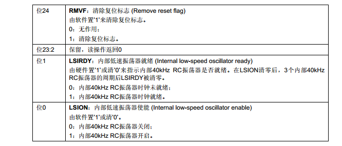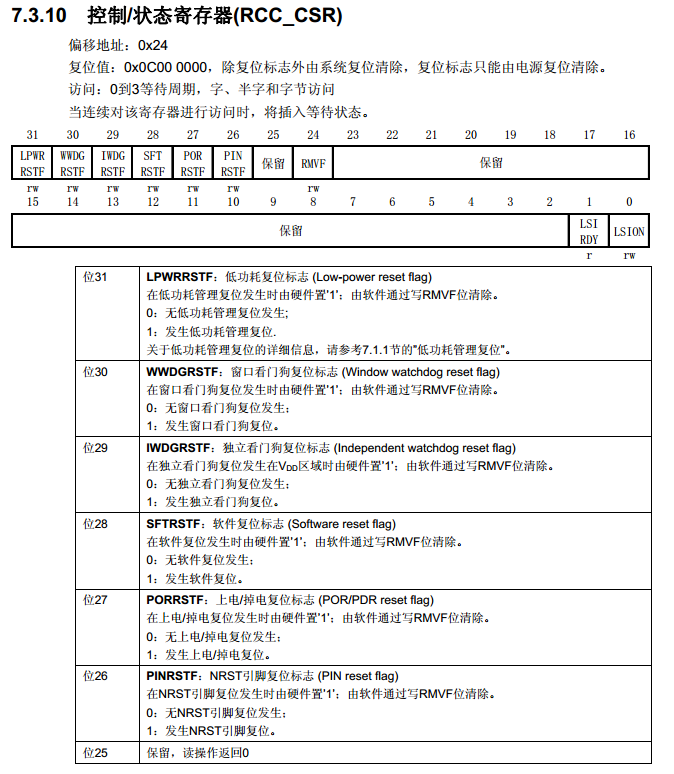 先看一下stm32中文参考手册对RCC_CSR寄存器的描述: