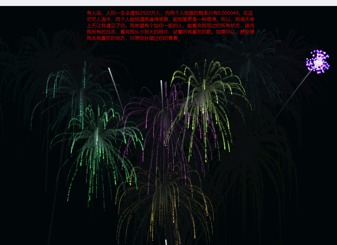 七夕情人节表白HTML前端代码小伙伴们七夕来了,还是单人吗?赶紧拿着代码去表白试试,说不定能成功呢?小猪在这里祝福有情人终成眷属,喜欢的小伙伴可以点一波关注,就是对我最大的支持喔。先演示一下(源码在下面)愿意就放烟火了下载链接: 七夕HTML5代码(改良版)_html-互联网文档类资源-CSDN下载版权声明:本文为qq_41085151原创文章,遵循CC 4.0 BY-SA版权协议,转载请附上原文出处链接和本声明。原文链接:https://blog.csdn.net/qq_41085151/article/details/108217093