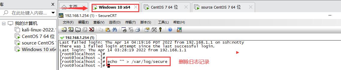 模拟恶意攻击者删除日志情形 ,恶意客户机远程登陆删除服务器日志