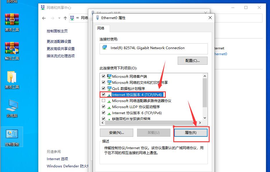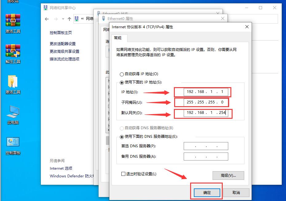 控制面板——》网络和Internet——》网络和共享中心——》本地连接——》属性——》ipv4协议版本——》属性——》配置后确定
