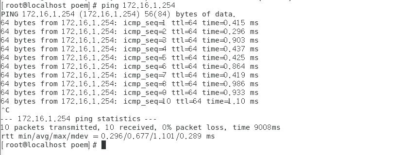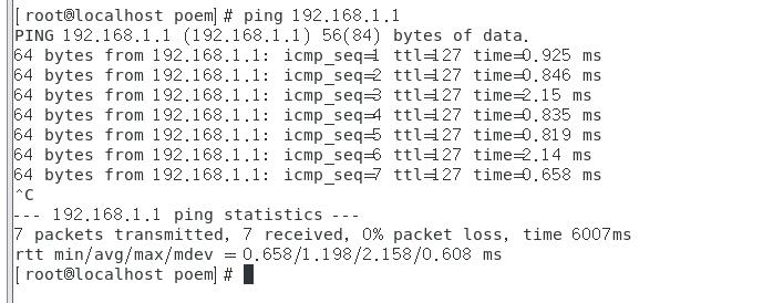 [root@localhost poem]# sysctl -p //立刻刷新当前配置文件