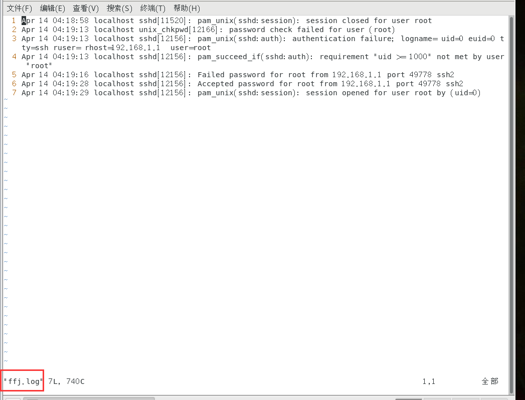 登录日志:vim secure //比较重要,记录了所有的登录信息