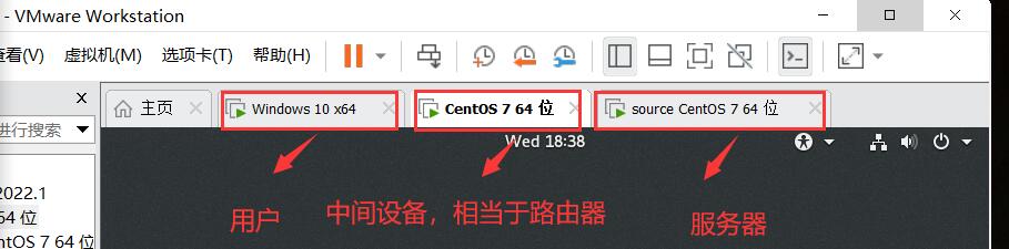 vm 16.2.3 ,虚拟机:一台windows10(用户),两台centos 7x64
