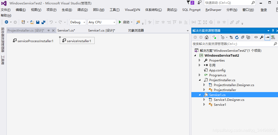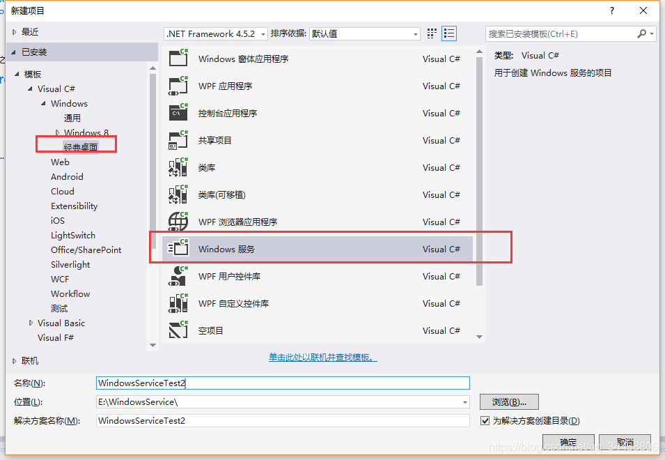 1.通过VS创建Windows服务,这里用的IDE是VS 2015:
