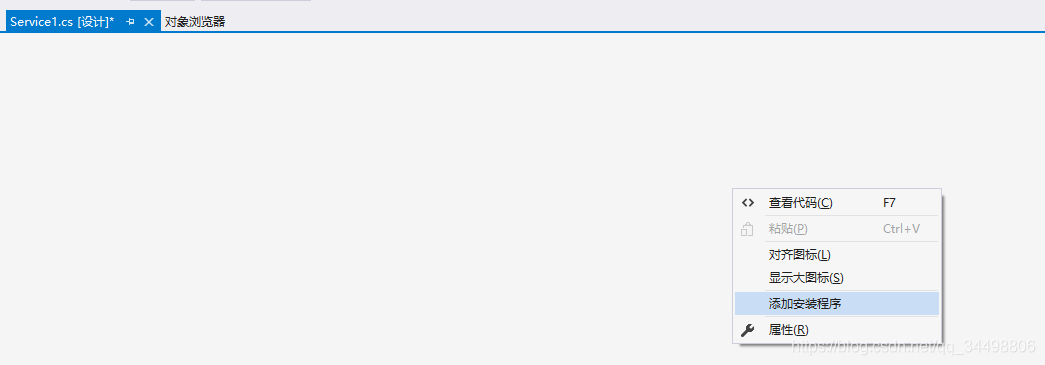 4、回到设计窗口点右键选择-添加安装程序 -生成serviceInstaller1和 serviceProcessInstaller1两个组件,把serviceInstaller1的属性ServiceName改写为你的服务程序名,并把启动模 式设置为AUTOMATIC ,把serviceProcessInstaller1的属性account改写为 LocalSystem