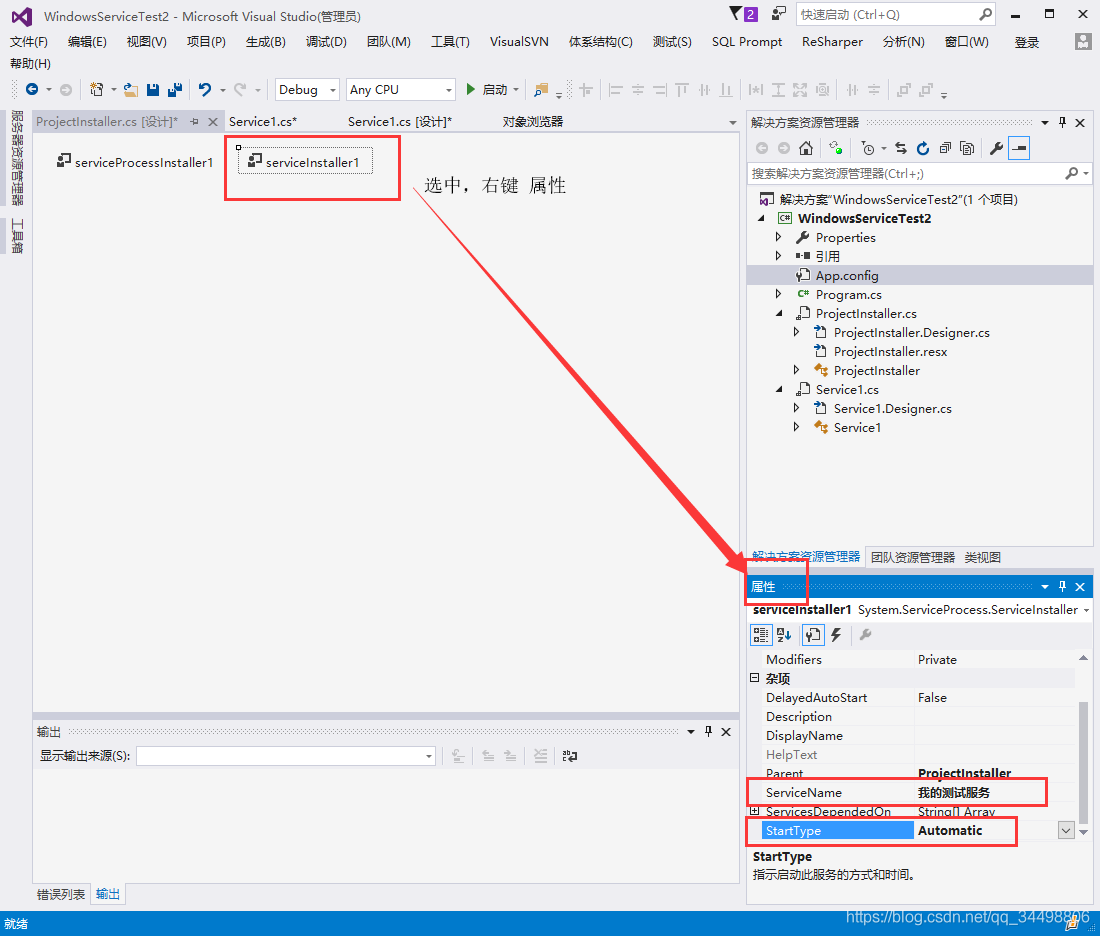 WindowsServiceName为你在serviceInstaller1的属性ServiceName中设置的名字
