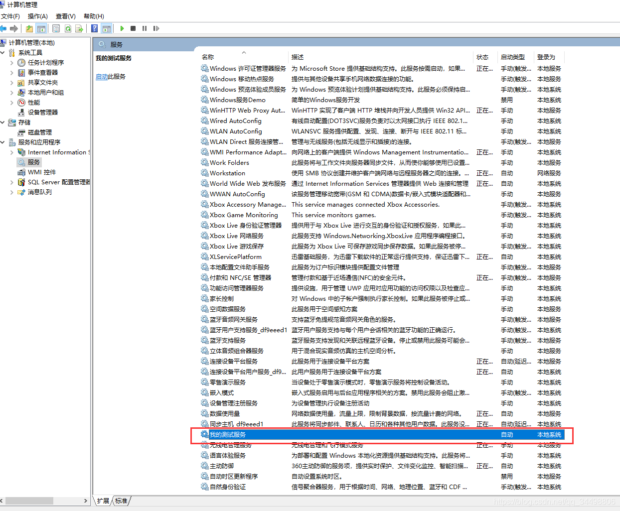 之后可以在计算机的服务管理器中查看你的服务: