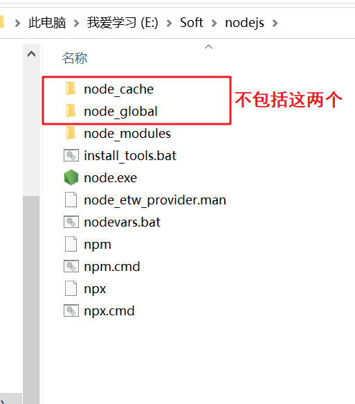 1.为了减轻C盘负担,全模块所在路径和缓存路径放在node.js安装的文件夹中,创建两个文件夹【node_global】及【node_cache】如上图所示: