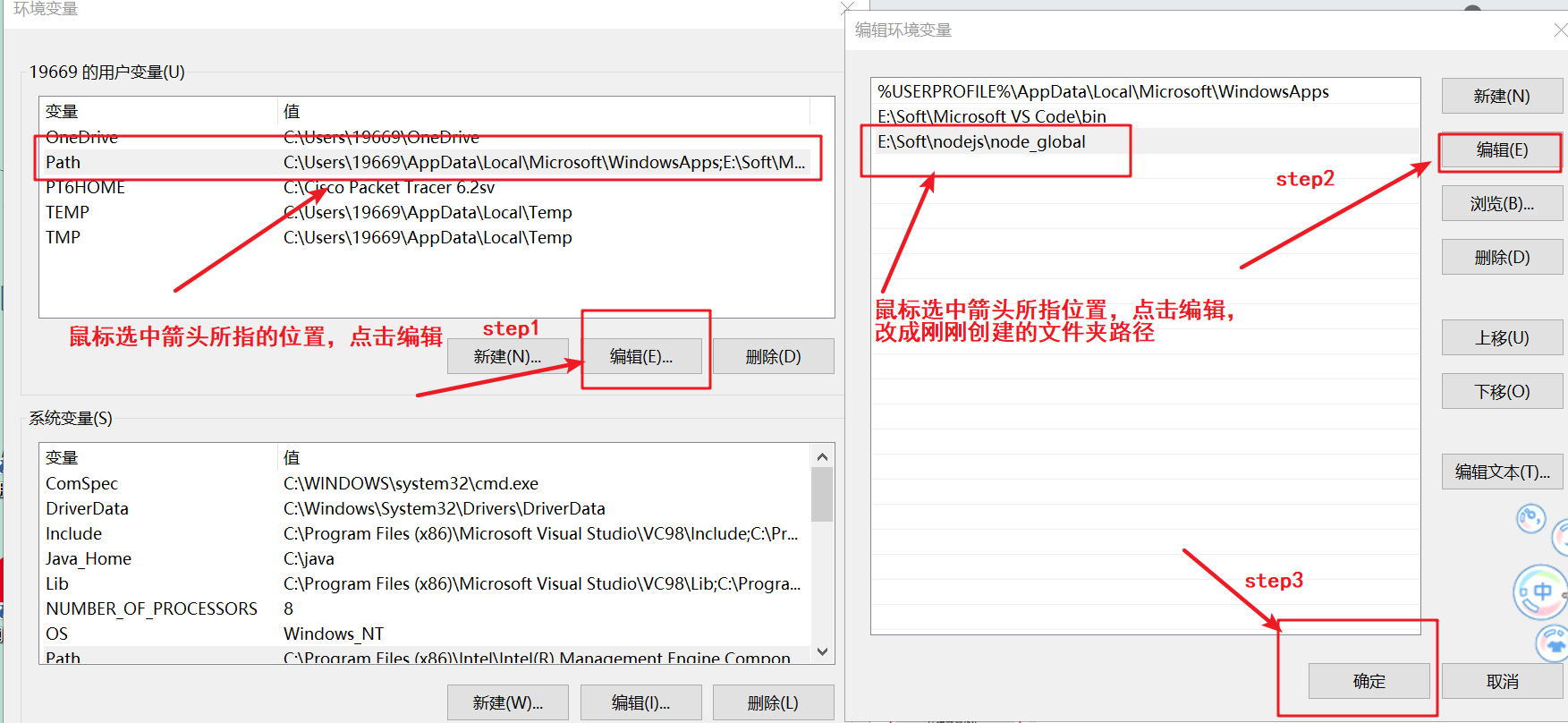 3. 如下图操作,小编这里的路径是E:\Soft\nodejs\node_global