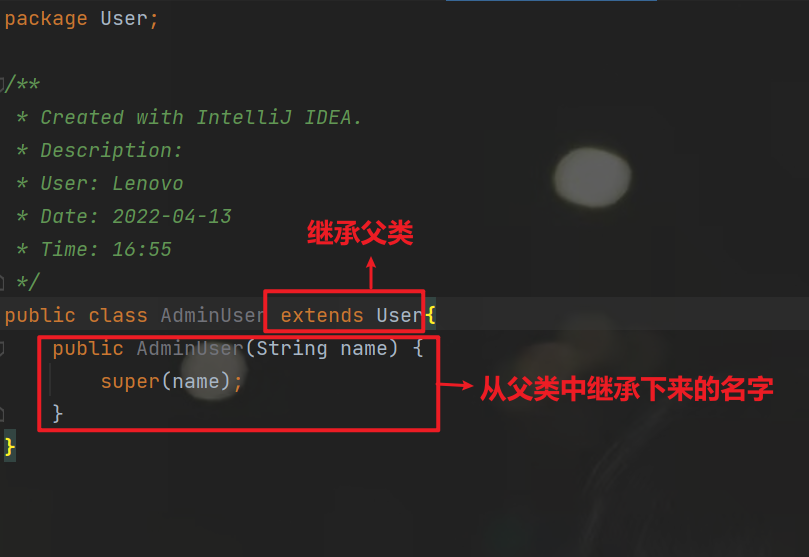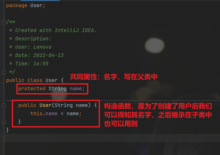 ②无论是管理员用户或是普通用户,他们肯定是都有名字滴~并且也有年龄性别啥的信息(不过在本博客中的程序只是将名字作为共性,其他期待大家来补充哇~),也就是说会有共同点出现,于是我们就可以用到继承的思想,来创建一个父类,将共同的都放入父类属性中,并让子类去使用。