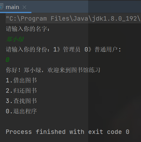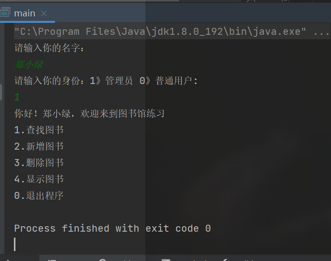 该图书馆管理系统是分为两种不同用户的,分别是管理员系统和用户系统,当我们输入自己的姓名后,通过选择数字1/0,来达到选择我们是管理员身份还是普通用户身份,以此来分别显示出不同的菜单来让我们选择不同的功能。可以大致分为下面4项步骤: